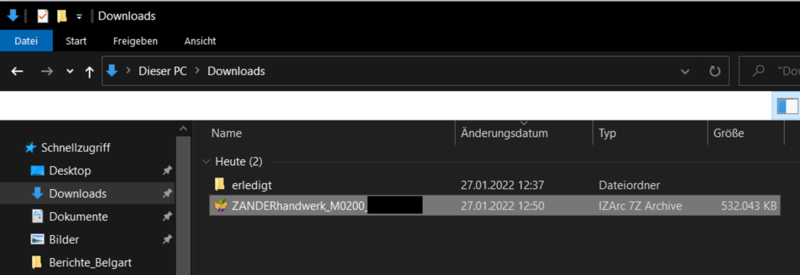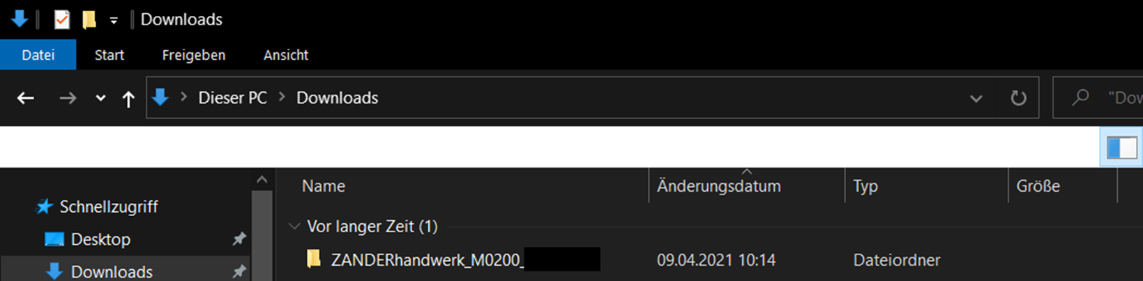 Schließen Sie zuerst ZANDERhandwerk. Navigieren Sie anschließend zu Ihrer heruntergeladenen ZANDERhandwerk Installation. Diese finden Sie in Ihrem Downloadordner. Der Ordner sollte wie in einer der beiden unteren Bilder aussehen. Sieht Ihr Ordner wie "Bild 1)" aus, folgen Sie den nächsten Schritten. Ist der Ordner wie in "Bild 2)", so überspringen die nächsten Schritte bis "Punkt 3".