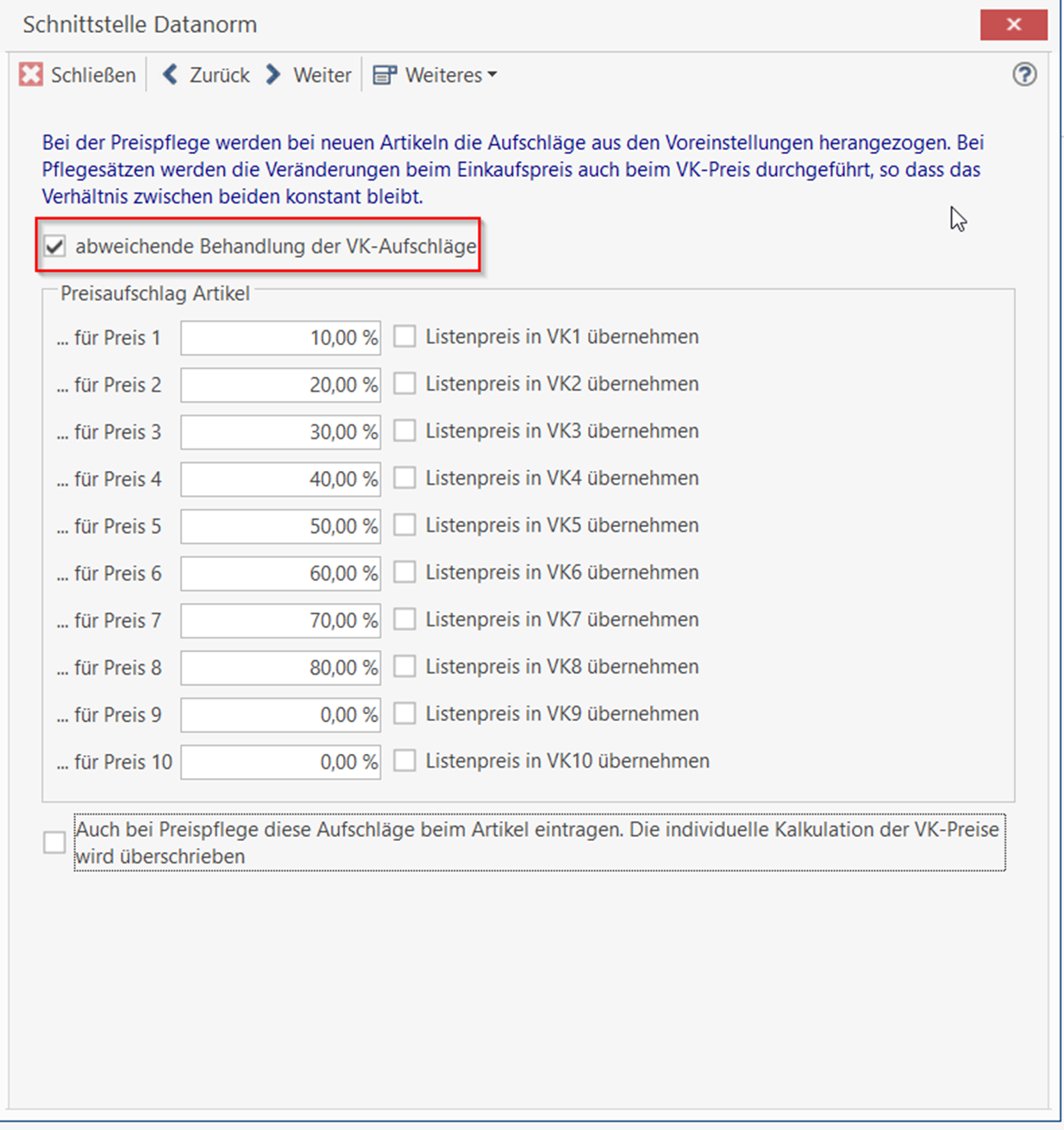 Beim Import Ihrer Datanormdaten haben Sie die Möglichkeit, nach Auswahl Ihres Lieferanten, für Ihre Verkaufspreise einen individuellen Aufschlag zu erheben.