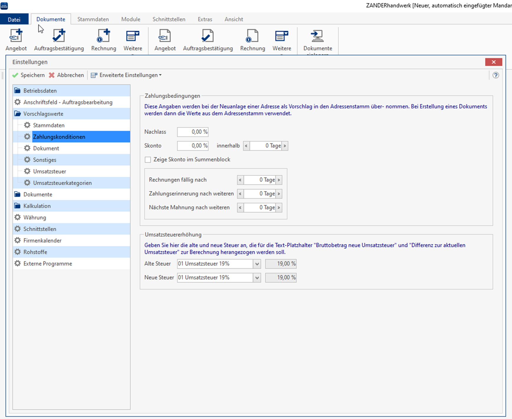 Wie stelle ich Zahlungsbedingungen für meine Kunden in ZANDERhandwerk ein?