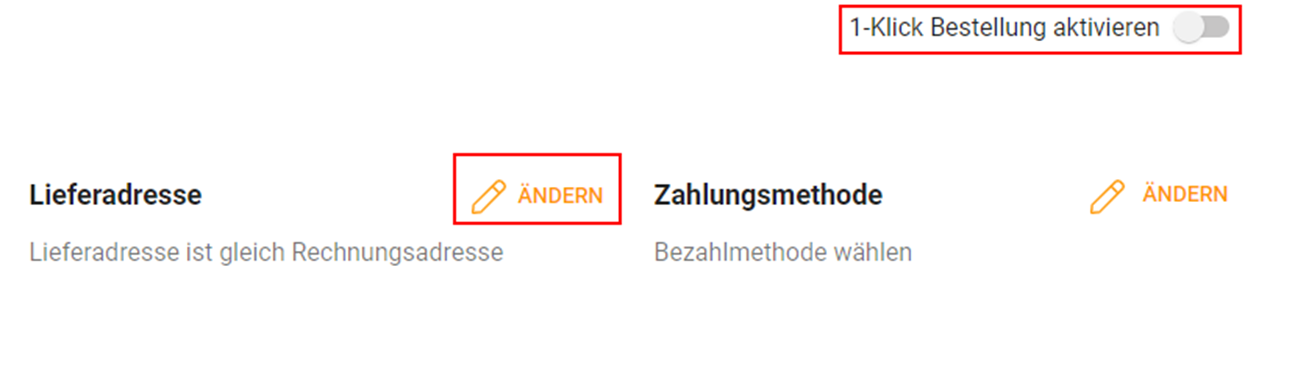 Wenn Sie nun zukünftig die 1-Klick Bestellung aktivieren und deaktivieren möchten, finden Sie den Schieberegler an den folgenden Stellen: