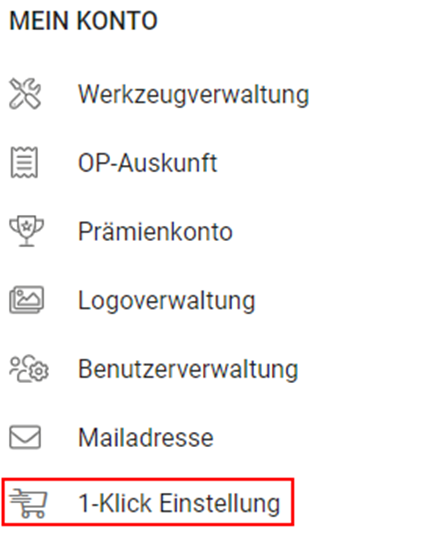 Für Ihre erste Aktivierung klicken Sie oben rechts auf Ihren Firmennamen und dann unter Mein Konto auf 1-Klick Einstellung.