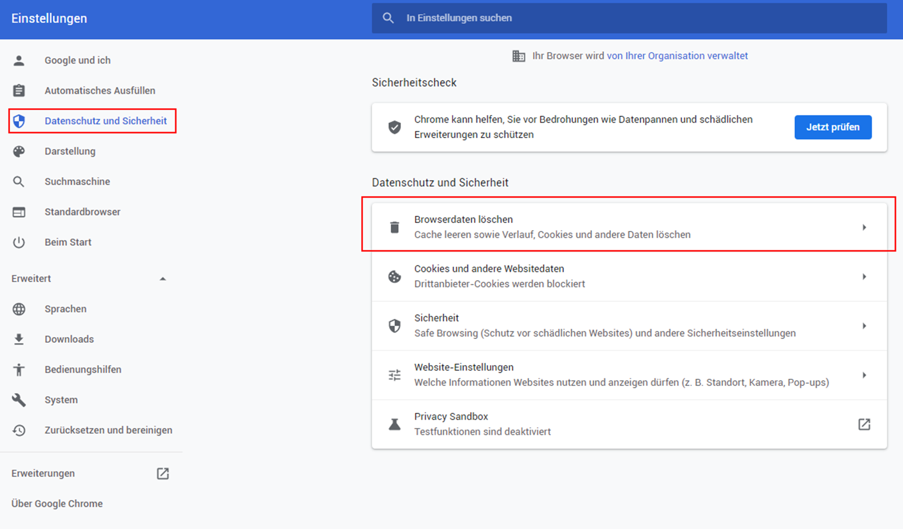 - Die Browserdaten löschen:
