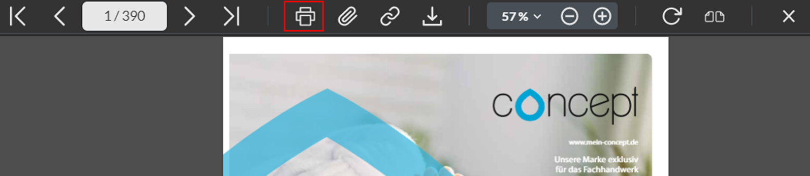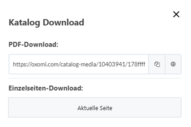 Im Oxomi Katalogportal können Sie über die Leiste oben rechts auch ausgewählte Seiten einzeln ausdrucken herunterladen.