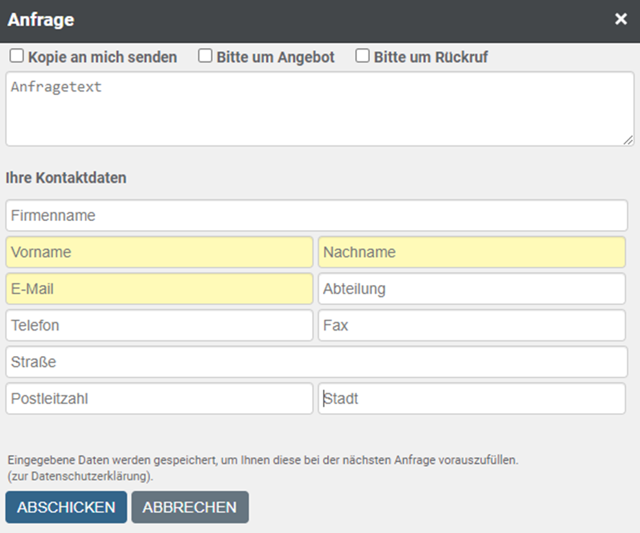 Artikel aus dem Katalogportal im Shop anfragen