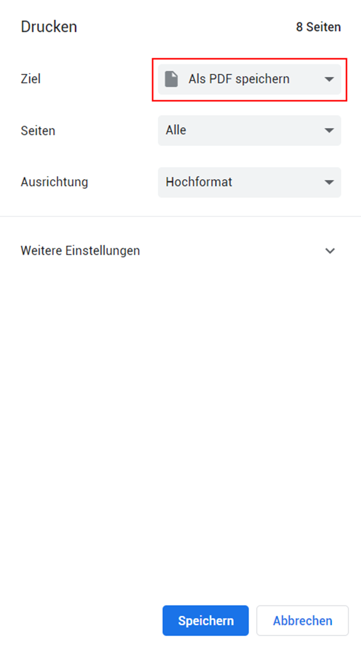 3. Beim Drucker "Als PDF speichern" wählen.