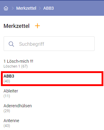 2. Wählen Sie im linken Fenster Ihren Merkzettel den Sie anzeigen möchten