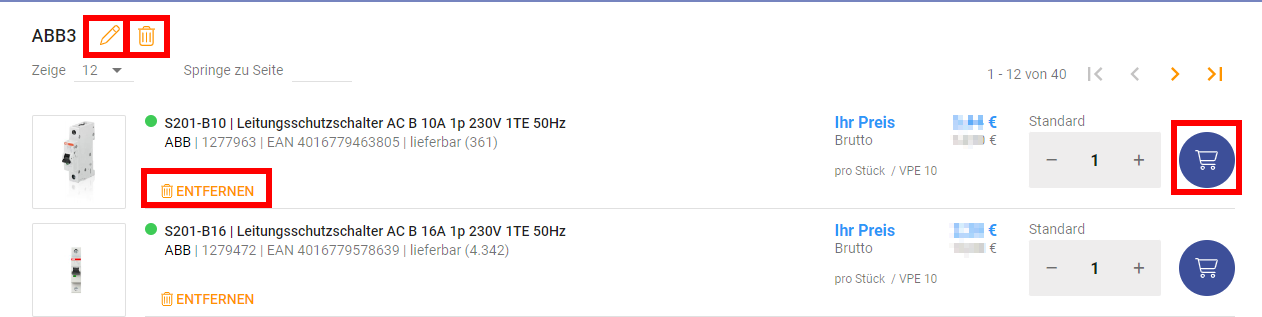 Nun können Sie Ihren Merkzettel bearbeiten oder aus Ihrem Merkzettel über das Warenkorb-Symbol bestellen.
