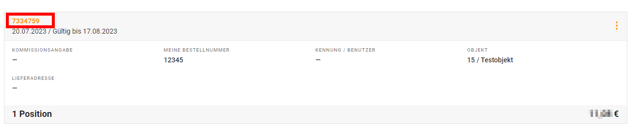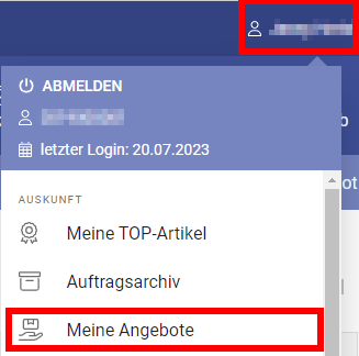 2. Klicken Sie auf die Angebotsnummer, die Sie in einen Merkzettel hinterlegen möchten.