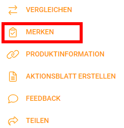 • Sie können von allen Bereichen in denen Sie am Artikel das "Merkzettel"-Symbol sehen, die Artikel in einen Merkzettel legen.