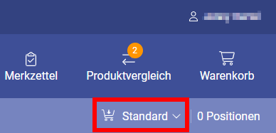 Wenn Sie mit mehreren Warenkörben arbeiten, können Sie über die blaue Leiste Ihren gewünschten Warenkorb vorher wählen.