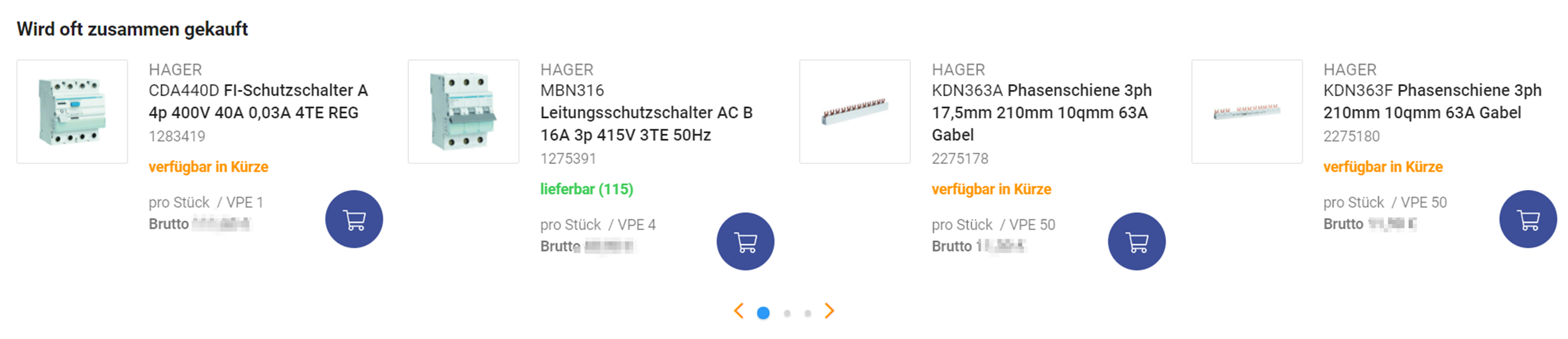 - Die Anzeige "Wird oft zusammen gekauft" zeigt an, welche Artikel oft mit dem ausgewählten Artikel zusammen gekauft werden. Mit den Pfeilen unten können Sie sich alle Artikel dieser Auflistung anzeigen lassen.