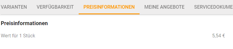 - In diesem Bereich erhalten Sie Informationen, die für den Preis wichtig sind. Dieser Bereich ist nicht bei allen Artikeln sichtbar und wird auch nur angezeigt, wenn Sie Ihre Nettopreise eingeschaltet haben.