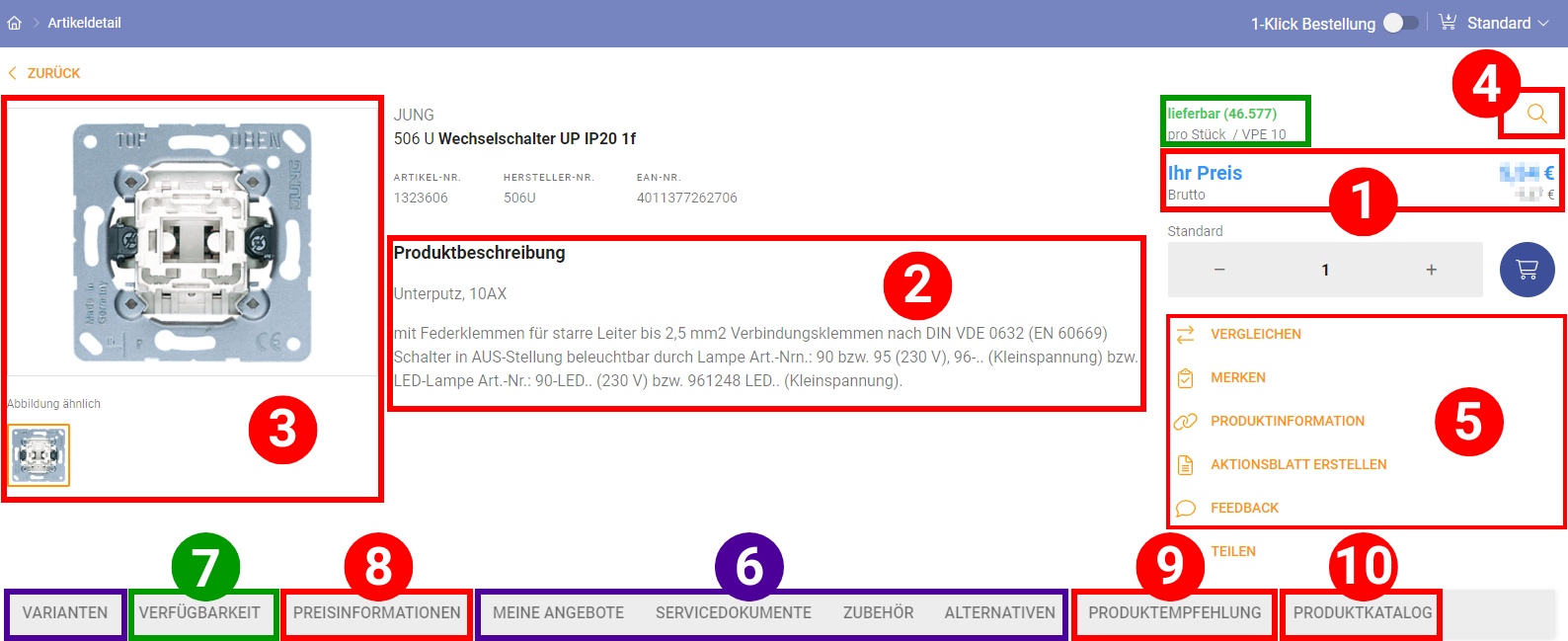 Wenn Sie einen Artikel suchen und in der Trefferliste auf den Artikel klicken, gelangen Sie zur detaillierten Ansicht des Produktes.