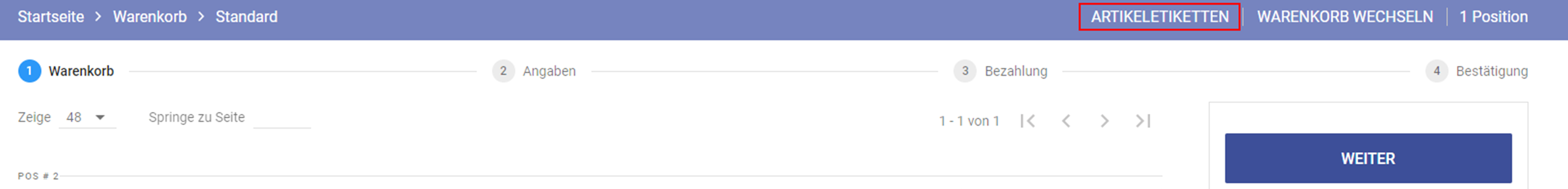 Warenkorb → Artikeletiketten