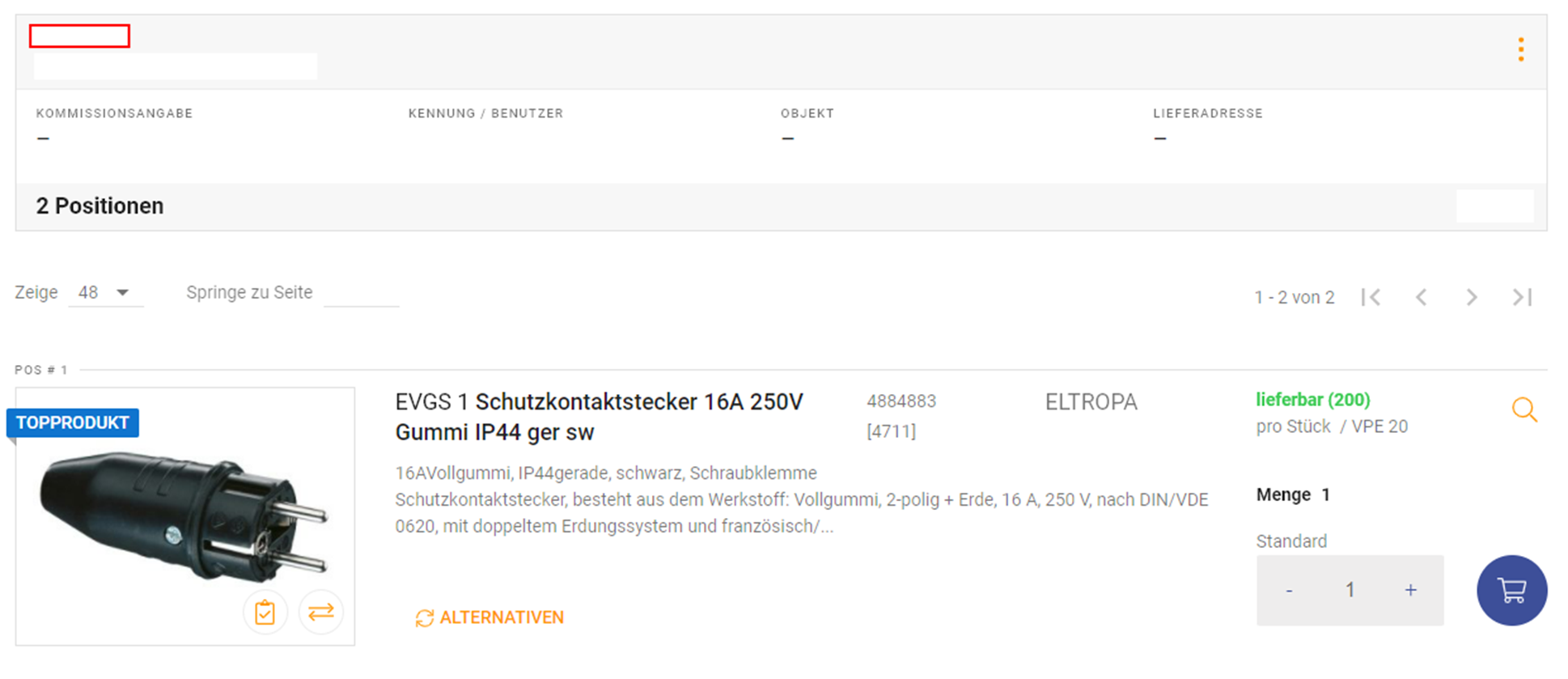 Sobald Sie eine Angebotsnummer anklicken, werden Sie in die Angebotsdetails weitergeleitet und der Artikel wird Ihnen in gelb angezeigt.