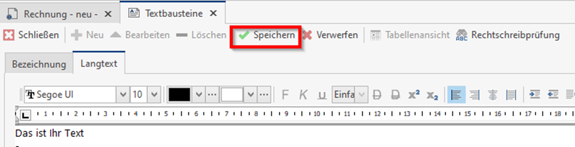 Speichern Sie nun Ihren Textbaustein