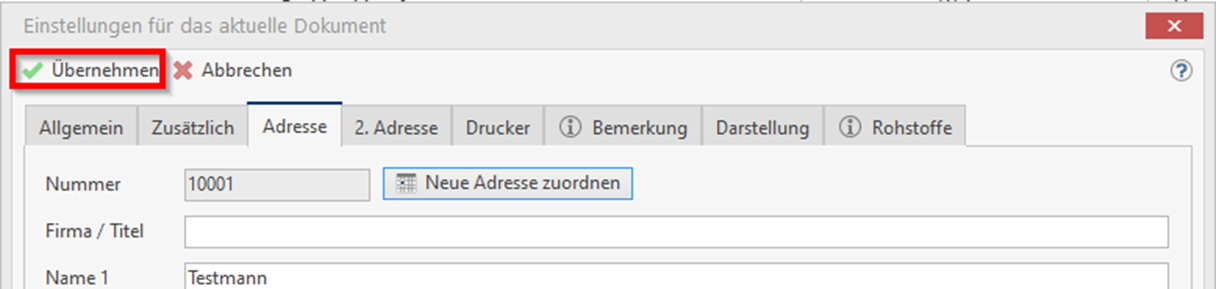 Klicken Sie dann in dieser Maske auf „Übernehmen“, damit die Einstellung im Dokument angepasst wird: