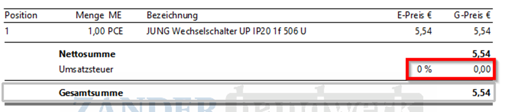 Jetzt können Sie den „Abschluss setzen“ und in der Summe werden Ihnen nun „0%“ Umsatzsteuer angezeigt: