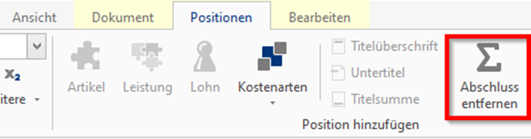 Um Ihren vorbereiteten Textbaustein nun einzufügen, klicken Sie auf den Text „Gesamtsumme“, damit die Zeile markiert wird und dann auf „Weitere Zeilen“ und „Textbaustein“ einfügen: