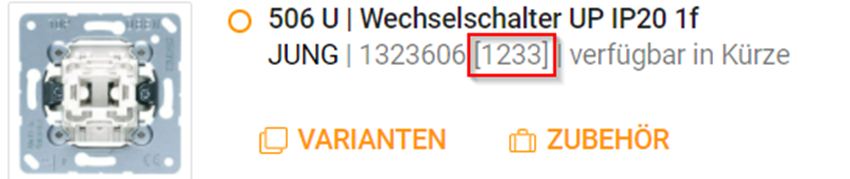 Ihre Artikelnummer wird in der Suche in den eckigen Klammern angezeigt: