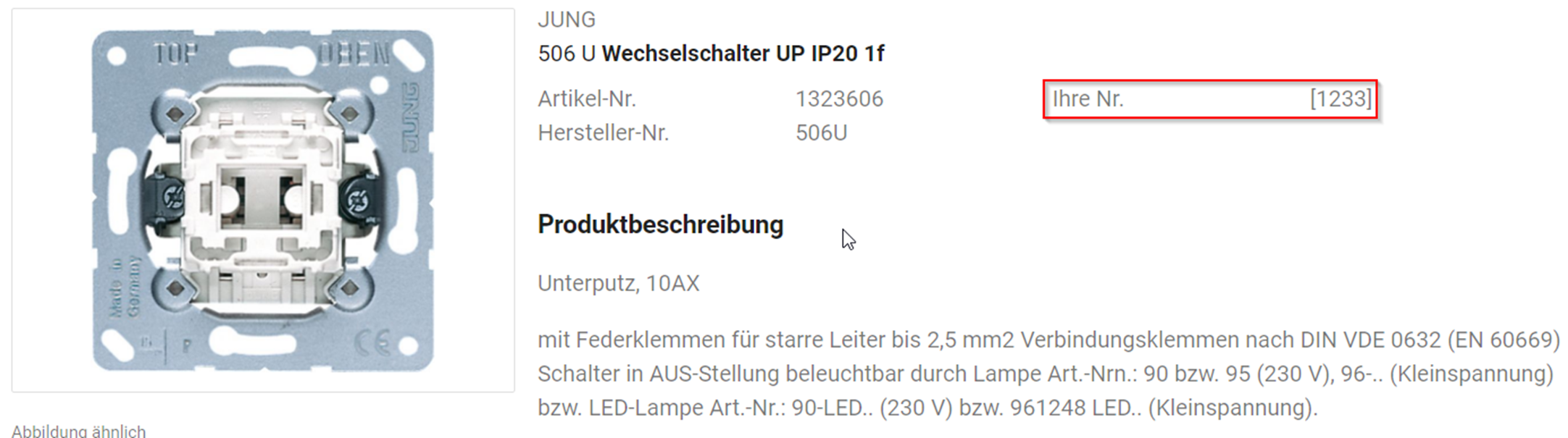 Wenn Sie auf die Artikeldetailansicht gehen, wird Ihnen auch da Ihre Artikelnummer angezeigt.